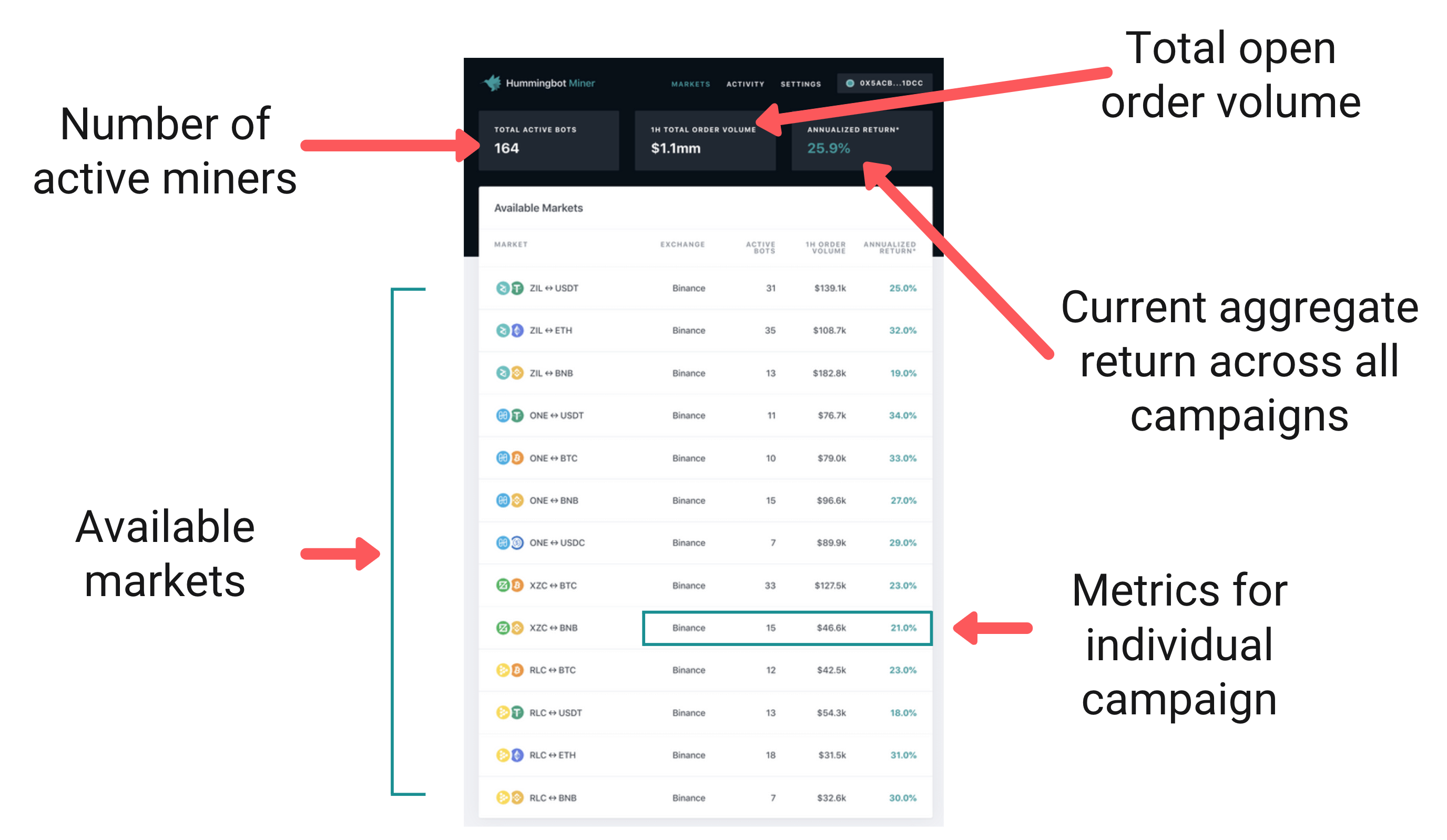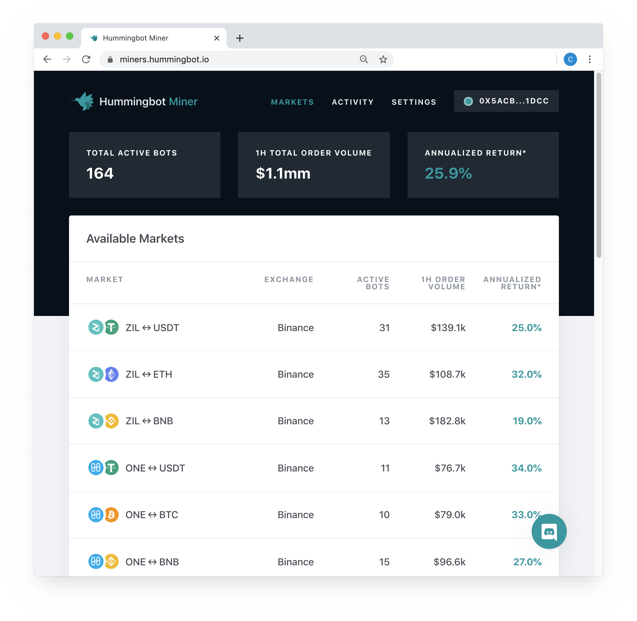 欢迎使用全新的Hummingbot Miners应用!!网站地址为https://miners.hummingbot.io。