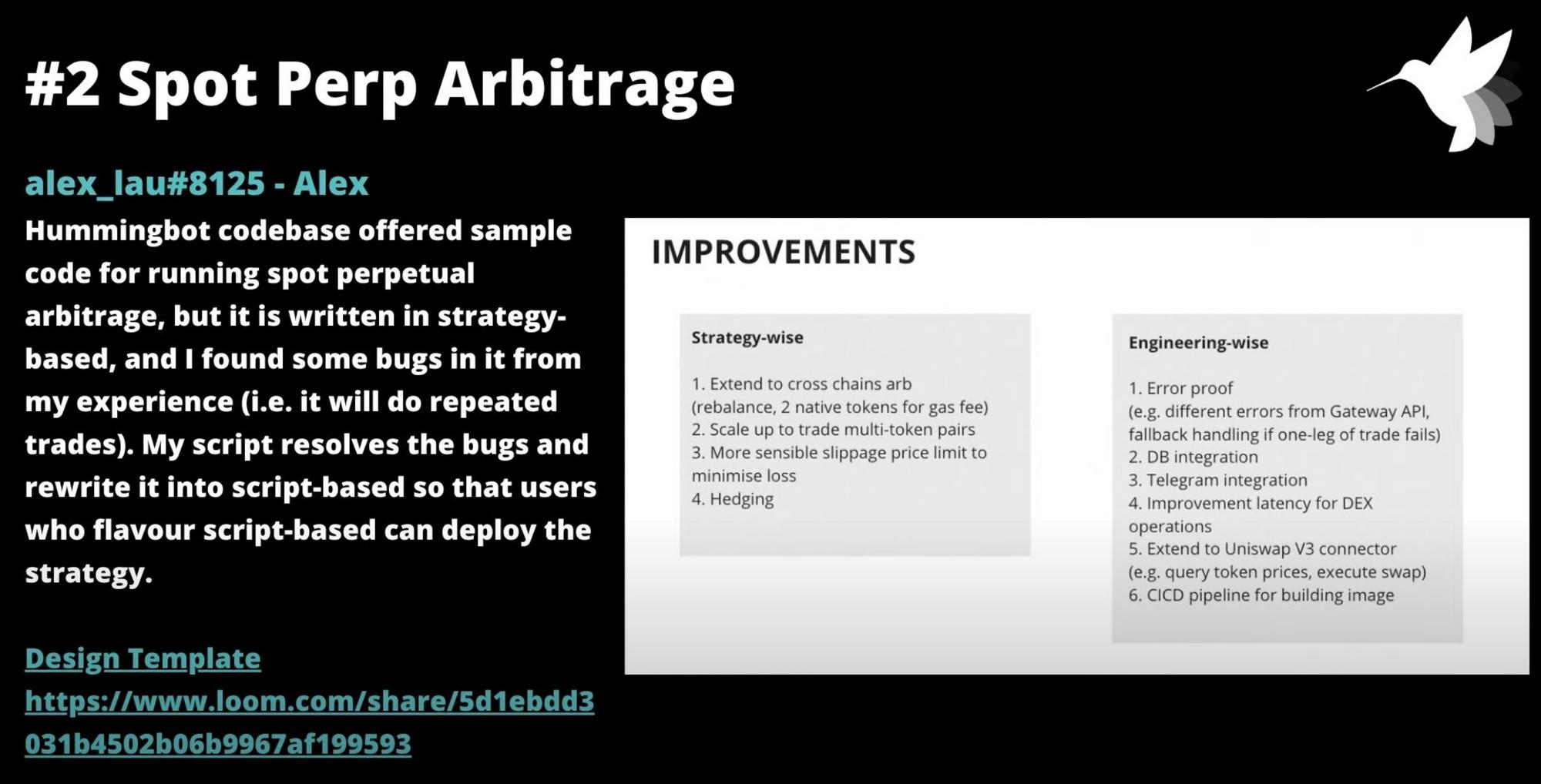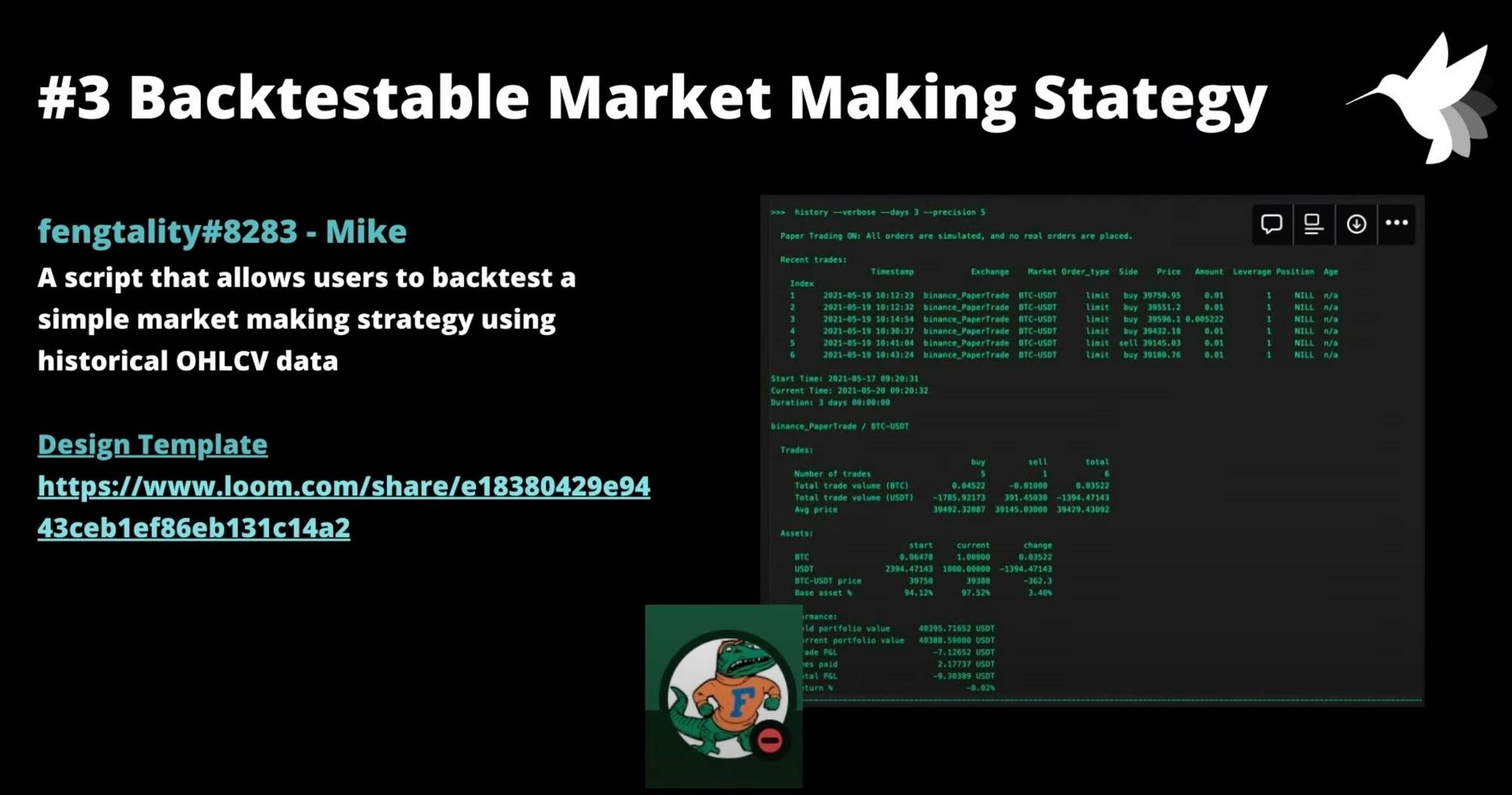 我们最近圆满结束了第四期 Hummingbot Botcamp 的课程,并举办了演示日活动,参与者展示了他们在为期六周的密集在线核心课程中开发的自定义交易脚本!