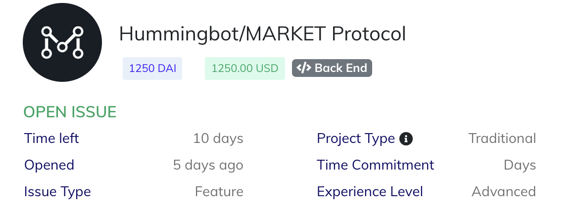 我们已与 Market Protocol 合作,赞助了一项价值 1,250 DAI 的 Gitcoin 悬赏任务,用于开发一种针对杠杆和做空代币的定制化做市策略。我们正在与其他项目和交易所合作推出类似的 Gitcoin 悬赏任务。