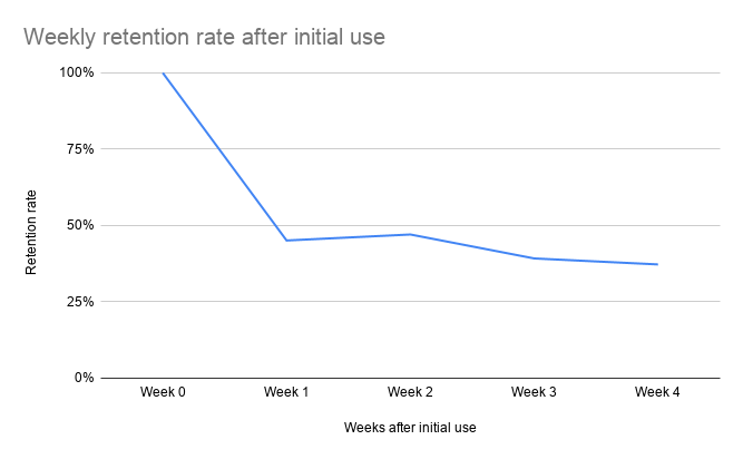 与大多数产品一样,在第一周后会出现使用量下降的情况,但近 40% 的新用户在一个月后仍在运行机器人,这一事实表明这些用户很可能正在盈利。
