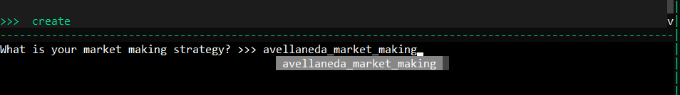 在 Hummingbot 中创建该策略需使用 create 命令,并指定 avellaneda_market_making 作为策略名称。
