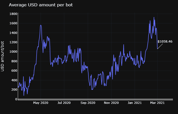 目前,每个机器人平均产生 1,058 美元 的挂单量/流动性。