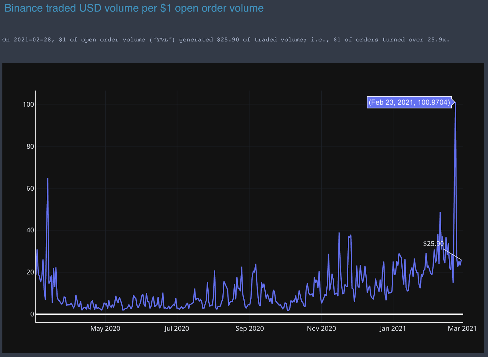 每 1 美元挂单金额对应的 24 小时交易量¶