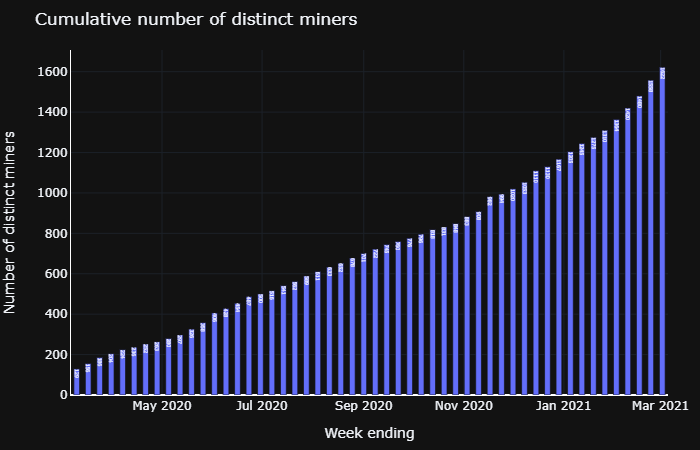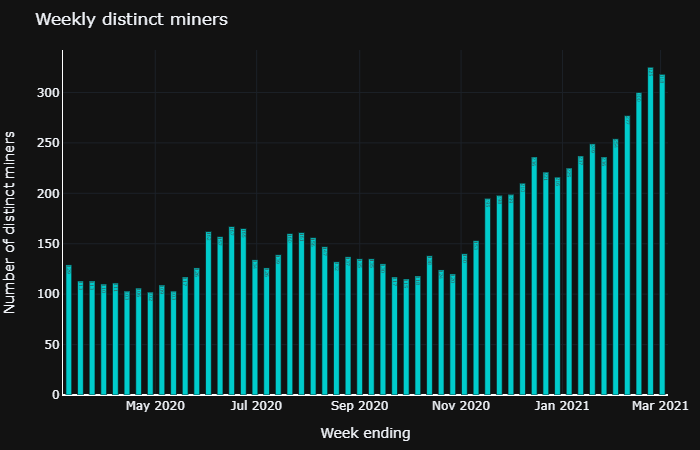 2 月份每周活跃独立矿工数量增长了 24.5%。