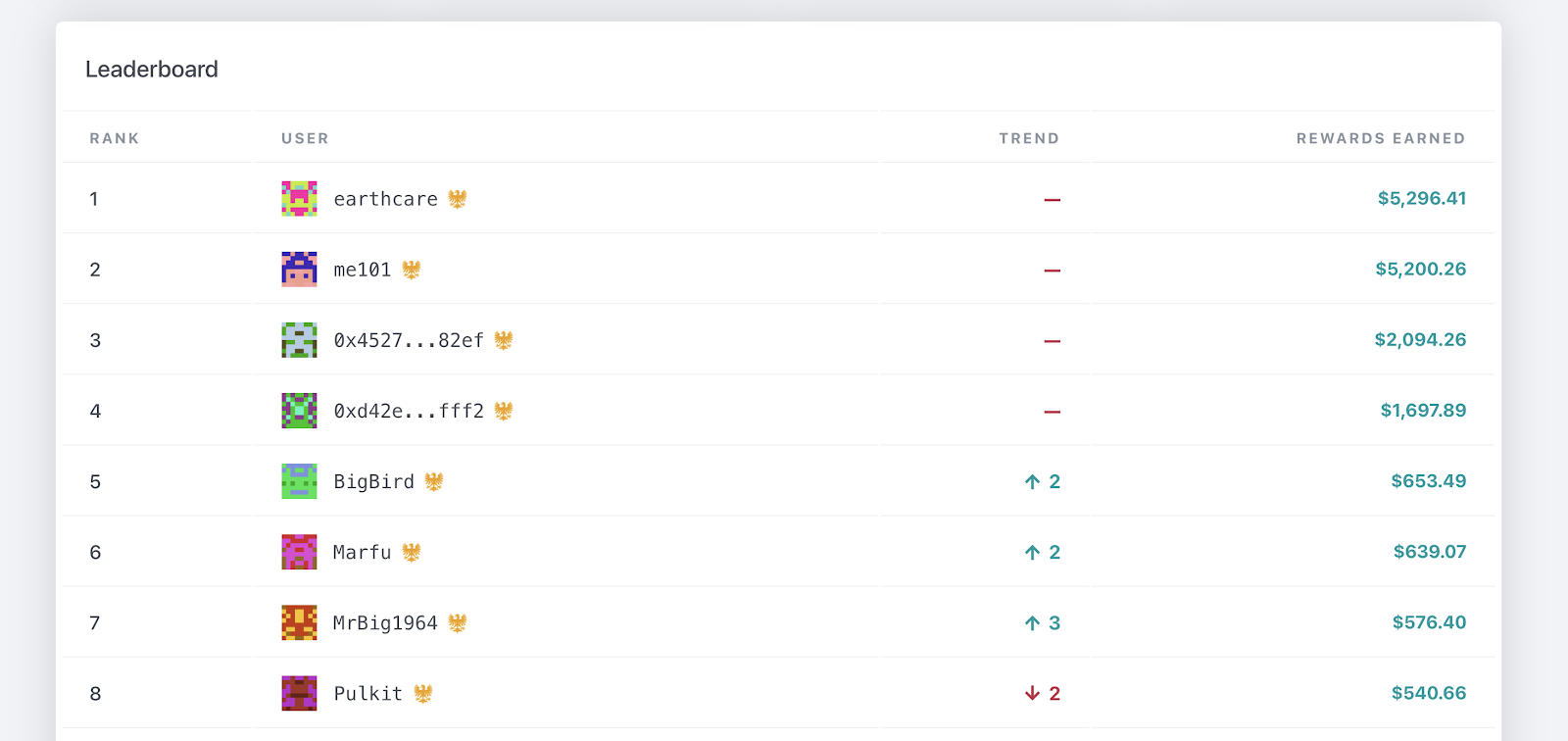 排行榜现在会显示每位矿工相对于上周的奖励排名变化情况。一些用户使用此功能来跟踪自己的机器人与其他矿工相比的表现。而且,一点良性的竞争也无伤大雅,对吧??