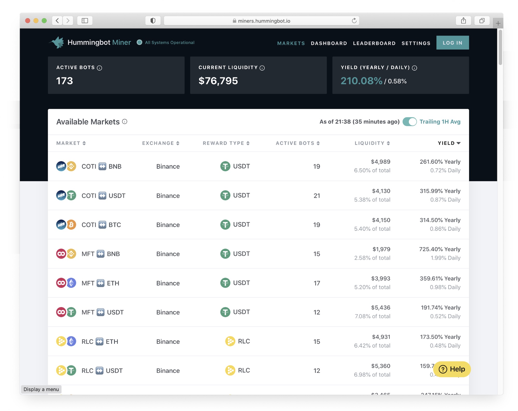 - Hummingbot Miner 应用:当前的流动性挖矿活动