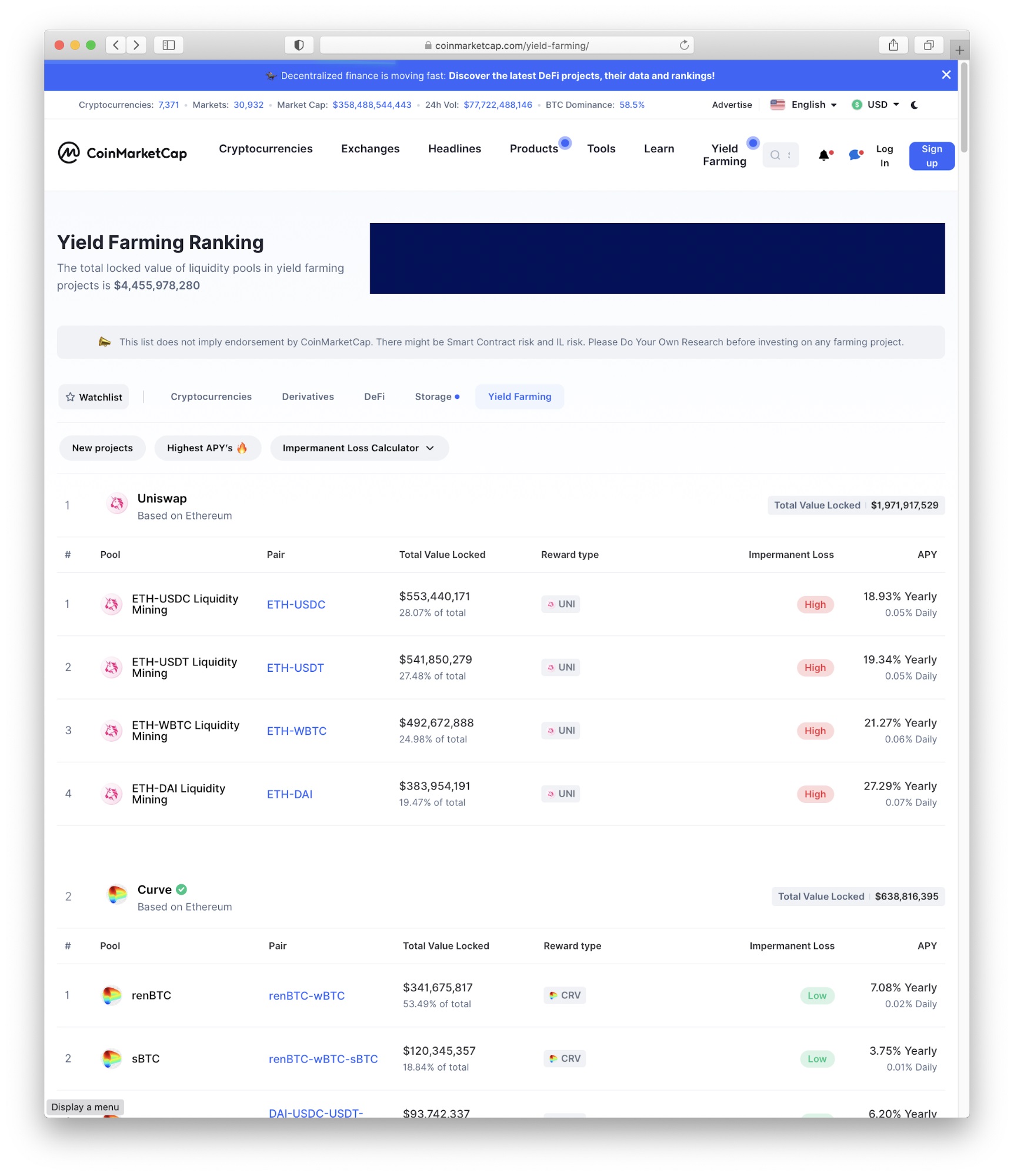 丰厚的流动性挖矿代币奖励,加上参与门槛极低,推动了 DeFi 的巨大增长以及用户对流动性池的广泛参与。