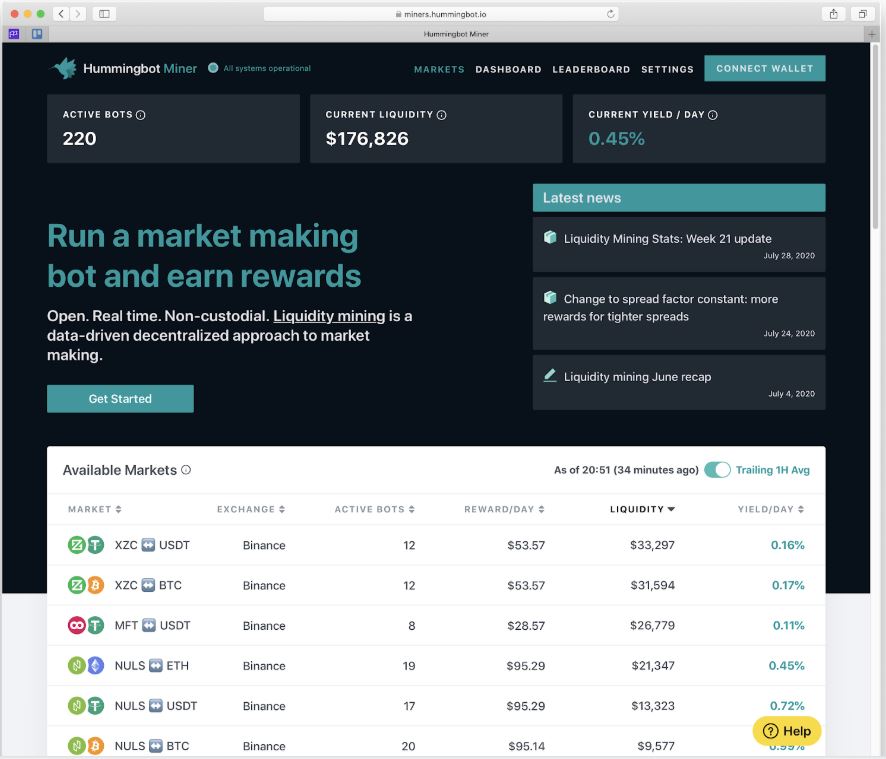 随后在 2020 年 3 月,我们推出了全新的 Hummingbot Miners 平台,这是我们根据白皮书中所述理念实现的流动性挖矿方案,并已为 8 个代币发行方成功开展了相关活动。