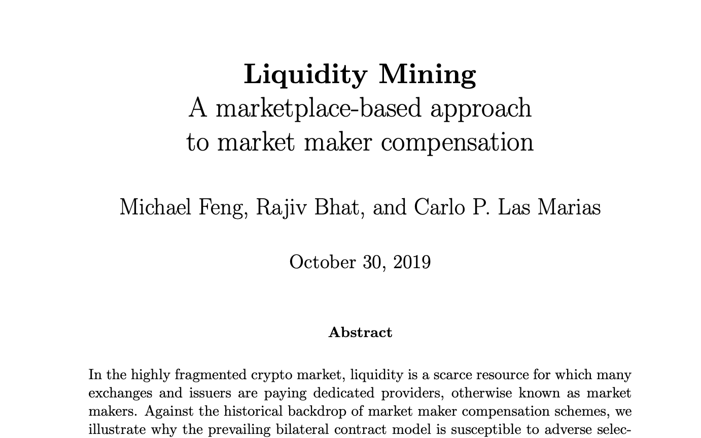 本摘要概述了《流动性挖矿白皮书》,该白皮书提出了一种在数字资产市场中提供流动性的创新方法。