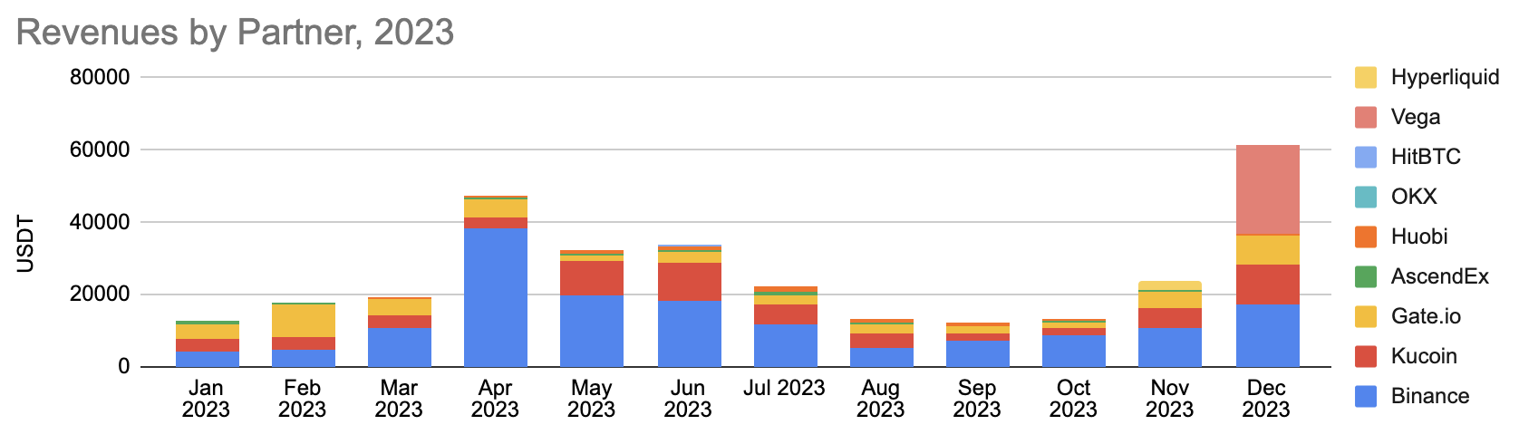 由于基金会大部分收入来自与交易所的费用分成合作,自 2022 年加密熊市以来,收入已大幅下降。